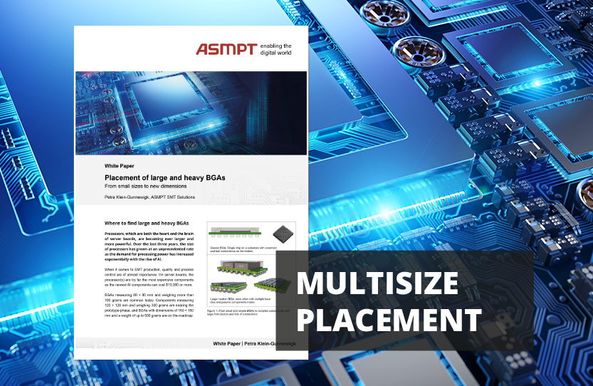 AI and high-performance computing drive increasing demands for placing oversized, irregular components. ASMPT meets these challenges with pioneering SMT placement technologies that set new multisize benchmarks.